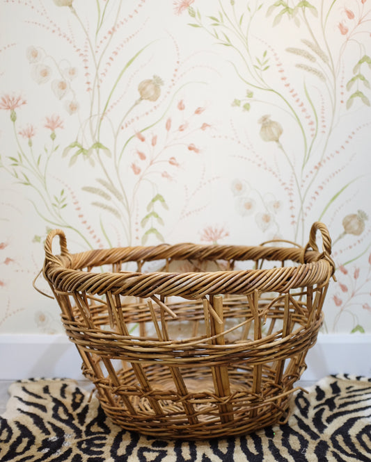 Large French Open Weave Wicker Basket
