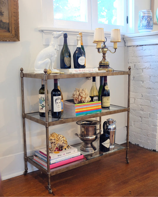 Drexel Brass Console Table/Bar Cart on Casters