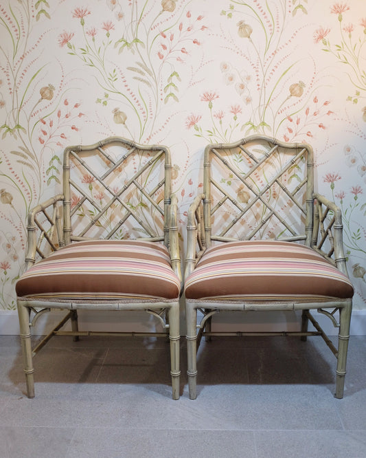 Distressed Pair of Faux Bamboo Captains Chairs