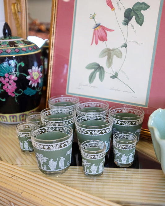 Set of Wedgwood Greek Green Jasperware Rocks and Shot Glasses