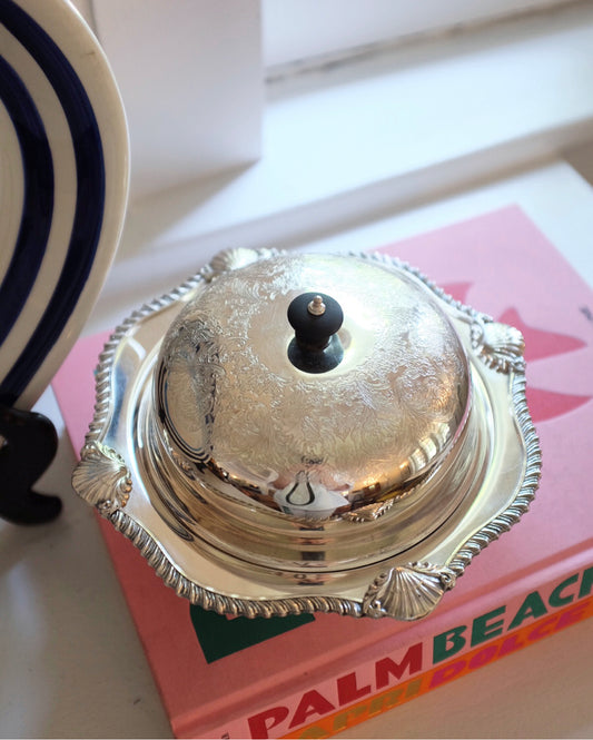 MCM Silver Metal, Teak Wood and Brass Nutcracker Plate