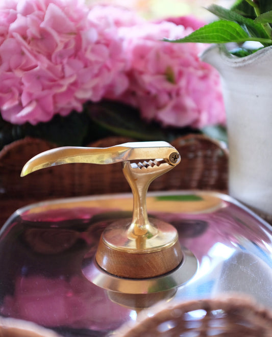 MCM Silver Metal, Teak Wood and Brass Nutcracker Plate